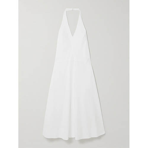 Бяла макси рокля с халтер、Рокля с халтер、Дълбока V рокля с халтер、Рокля с халтер без гръб、Развяваща се макси рокля